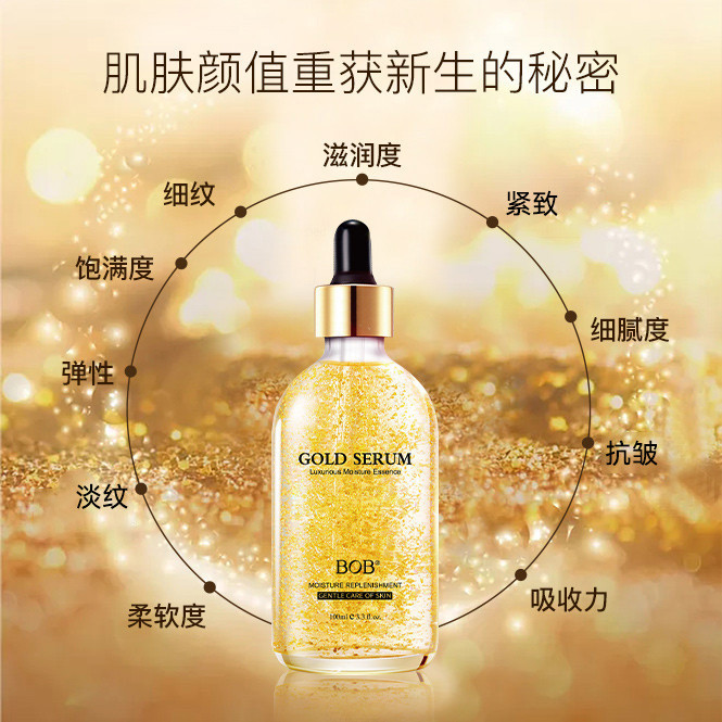 黄金精华液含烟酰胺,金等活性成分,深层滋润,紧致肌肤,改善干燥,粗糙无光泽等肌肤现象,还可以保湿补水,改善皱纹,淡化细纹,呵护肌肤屏障