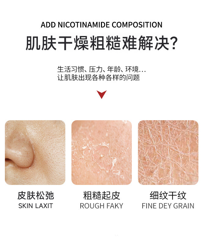 针对肌肤问题: 干燥起皮,肌肤粗糙,肤色暗沉,干纹细纹